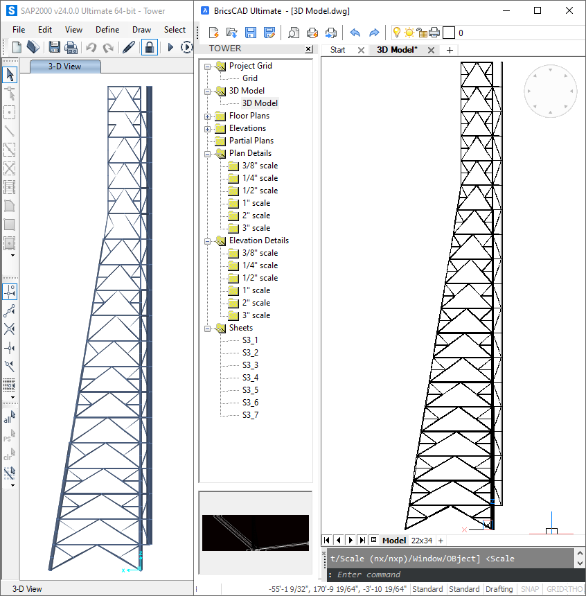 Models analyzed and designed in SAP2000 can now be imported into CSiXCAD. This provides a comprehensive detailing solution for steel structures modeled in SAP2000.